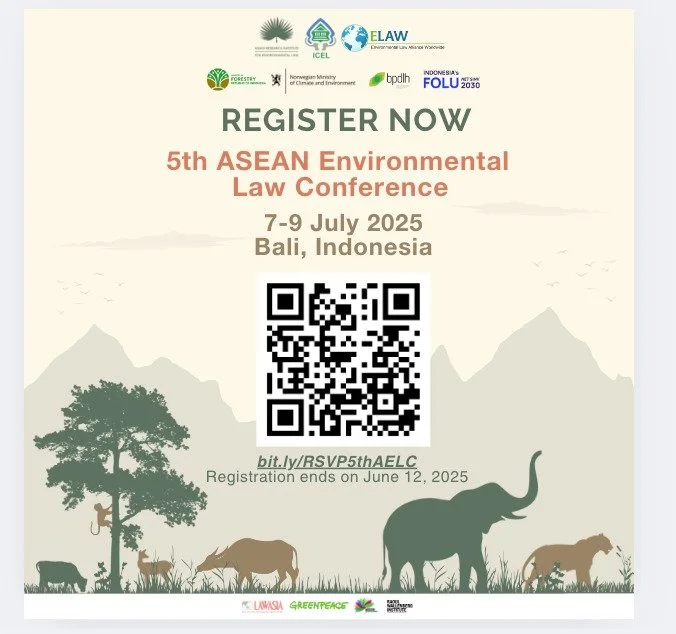 Upcoming Events The 5th ASEAN Environmental Law Conference 7-9 July Bali, Indonesia Registration is now closed